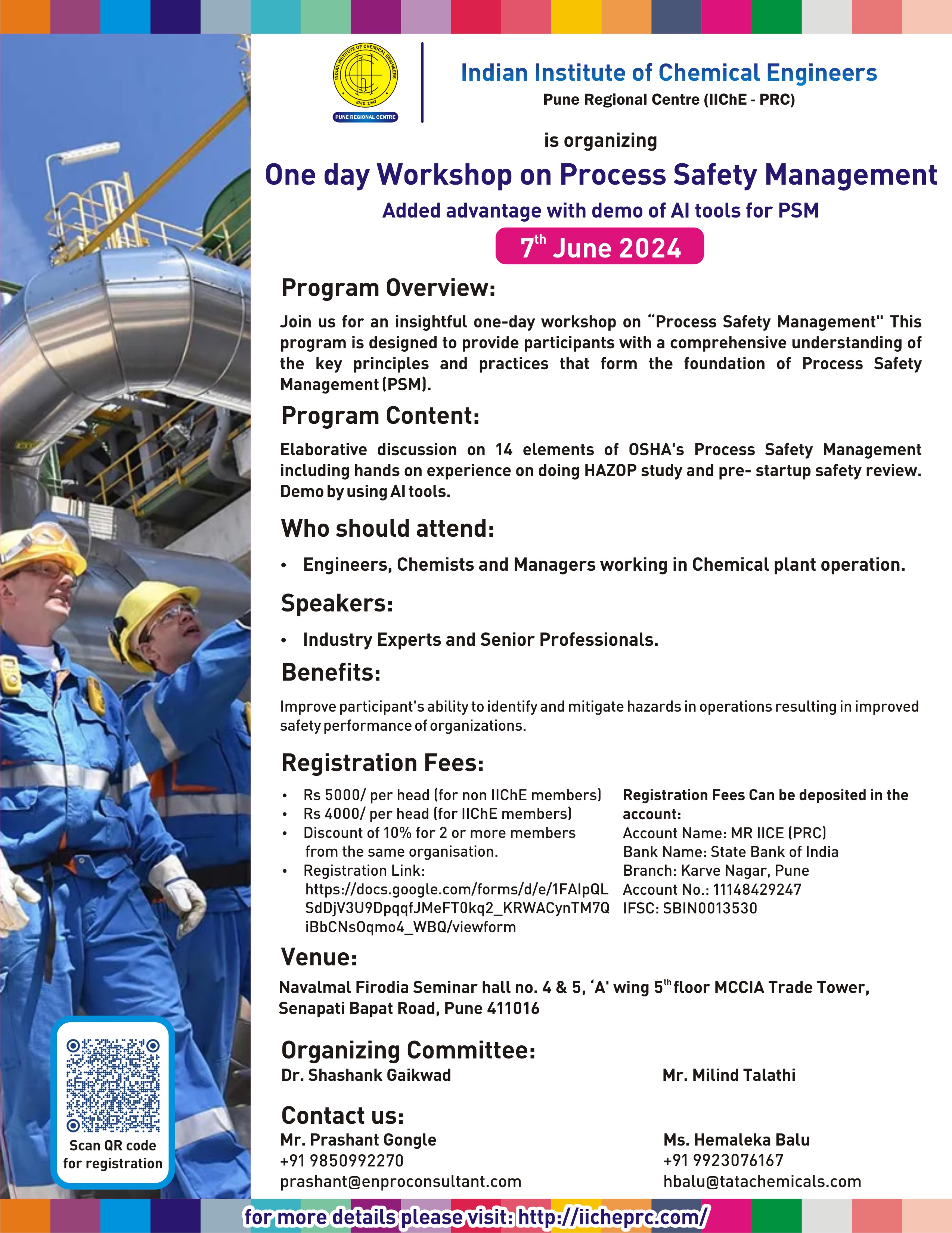 One day Workshop on Process Safety Management (Added advantage with demo of AI tools for PSM), Pune on dated 7th June 2024